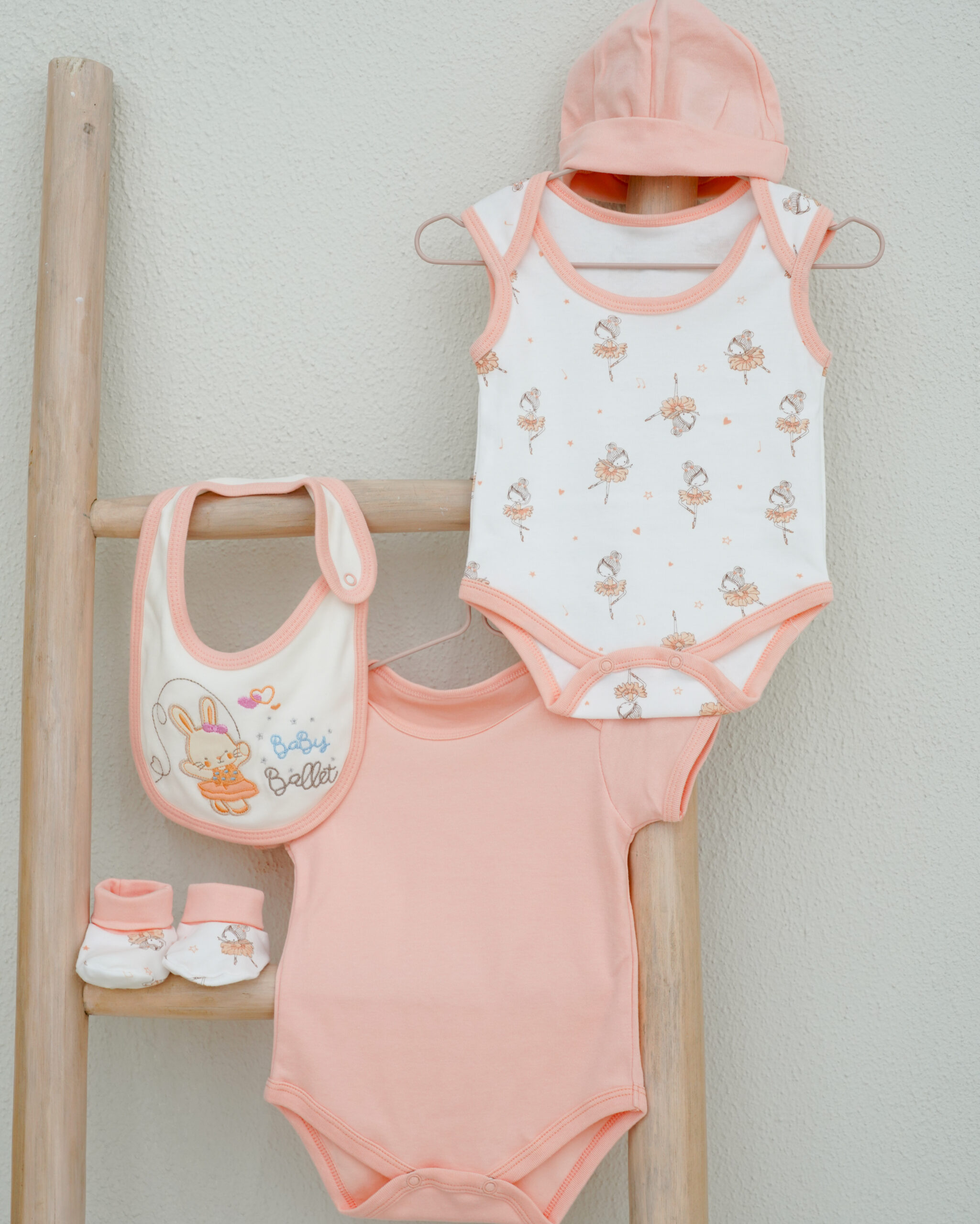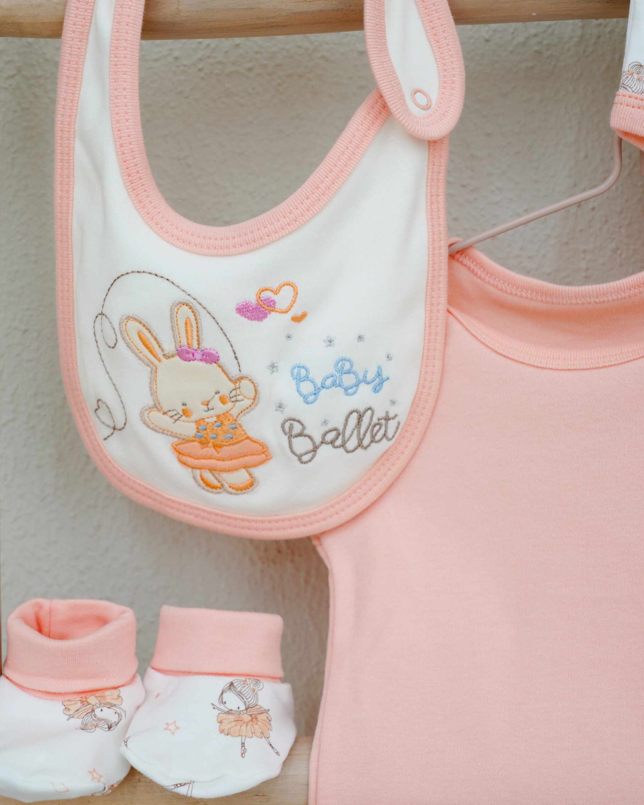 Peach Ballet Baby Set – 7 Pieces (0–3 Months)